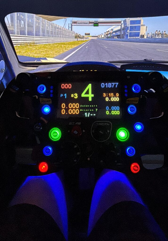 - 4,3″ Farbdisplay für Telemetrie, Delta-Zeiten, Reifendrücke usw. (per SimHub oder hauseigener Software konfigurierbar)