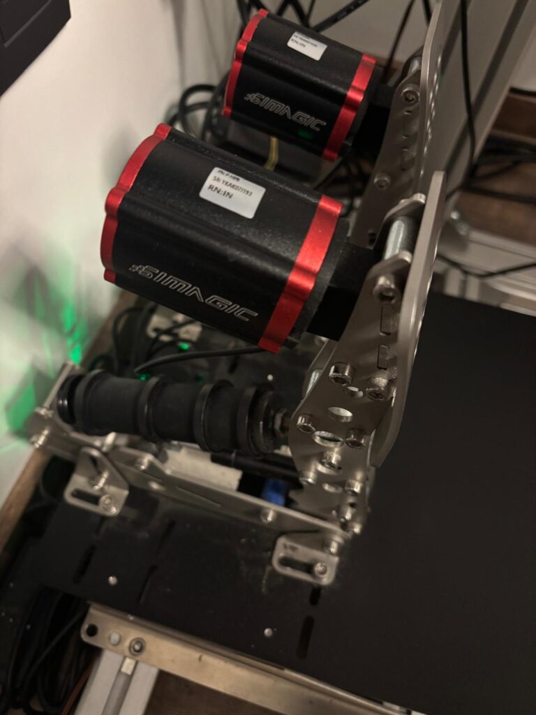 Der Unterschied war sofort spürbar: während die kleinen DC-Motoren von Simracelab eher ein gleichmäßiges Vibrieren erzeugt haben, liefern die Simagic-Reaktoren richtig knackige Impulse. Ebenso kann man bei dem Simagicsystem die Hertzanzahl der Motoren einstellen. Bremsen am Limit fühlt sich plötzlich so an, wie es sich anfühlen soll – genauso wie Wheelspin oder das Rattern über die Curbs. Und die Dinger haben richtig Dampf – wenn man es will.